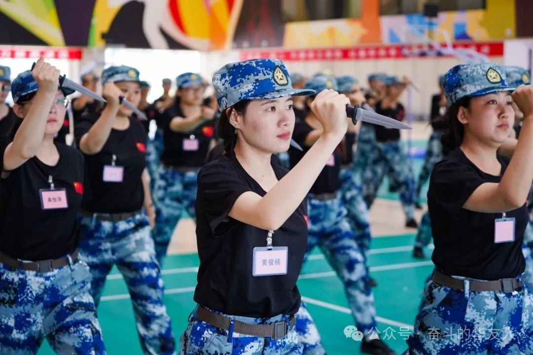 随着军训的深入,,,,, ,学生们学习了军体拳和匕首操。 。。。。这些训练项目不但要修业生们展现着力量,,,,, ,更要求他们掌握技巧和节奏。 。。。。军体拳训练,,,,, ,每一次出拳、每一次跨步,,,,, ,都是对自我控制力的挑战;;;;;匕首操方阵,,,,, ,新人们横砍竖削,,,,, ,所向披靡,,,,, ,都体现出赴汤蹈火的果敢英气。 。。。。