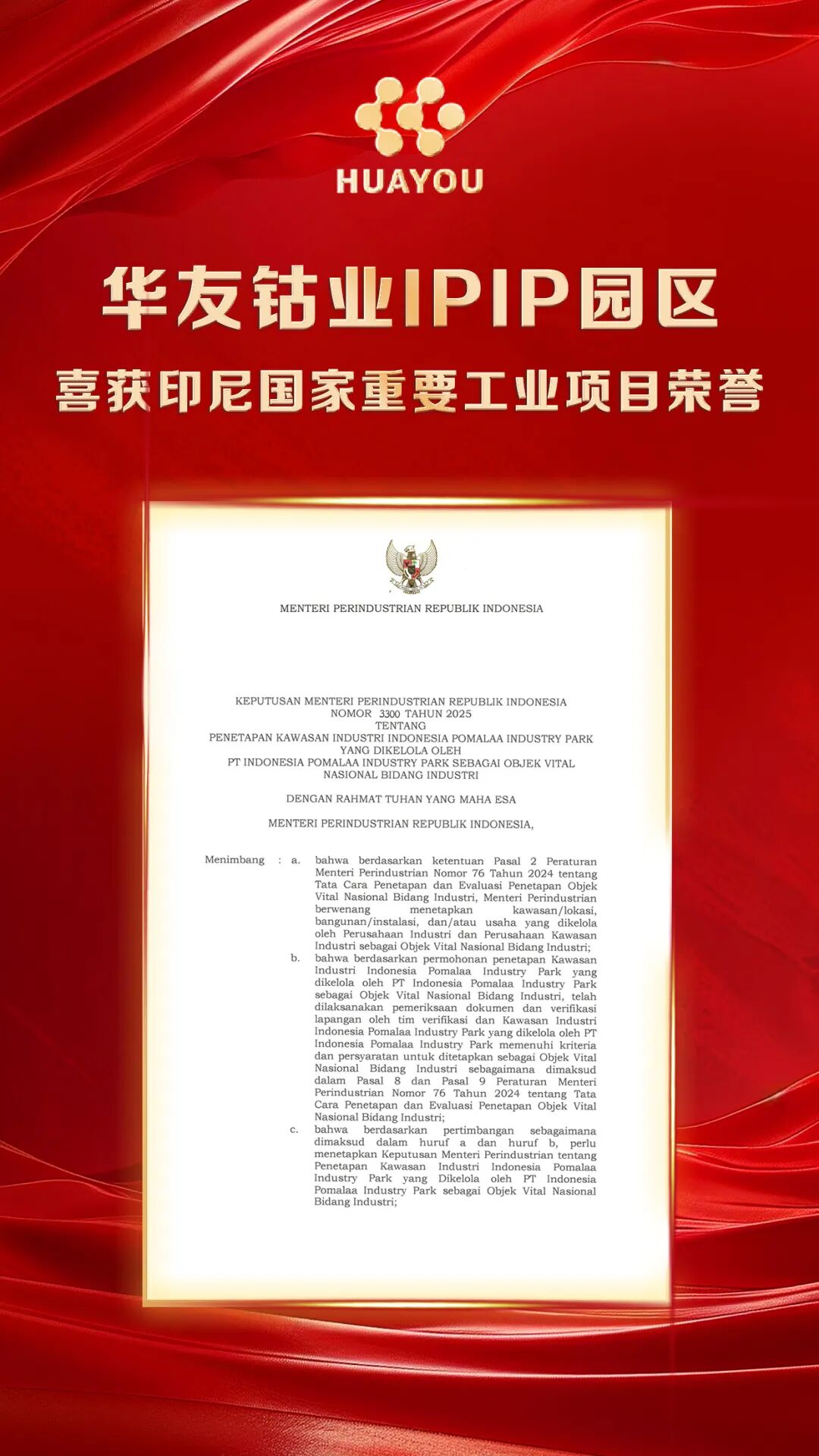 9Ô£¬£¬£¬£¬£¬£¬£¬£¬Î°µÂ¹ÙÍøÓ¡ÄᲨÂíÀ¹¤ÒµÔ°Çø£¨IPIP£©ÔÙ»ñ¹ú¼Ò¼¶ÊâÈÙ¡ª¡ª±»ÕýʽÊÚÓè¡°Ó¡Äá¹ú¼ÒÖ÷Òª¹¤ÒµÏîÄ¿£¨OVNI£©¡±³Æºô¡£¡£¡£¡£¡£¡£¡£ÕâÊÇIPIP¼Ì¹ú¼ÒÕ½ÂÔÏîÄ¿£¨PSN£©Ö®ºóµÄÓÖÒ»Ó¡Äá¹ú¼Ò¼¶ÉùÓþ£¬£¬£¬£¬£¬£¬£¬£¬Óɹú¼Ò¹¤Òµ²¿¡¢Ë¾·¨ÈËȨ²¿¡¢¾¯Ô±Î¯Ô±»áµÈ¶à²¿Î¯ÍŽáÆÀÉó¡¢¶àÂÖʵµØ¿¼²ìºóÅäºÏ½ÒÏþ£¬£¬£¬£¬£¬£¬£¬£¬±ê¼Ç×ÅIPIPµÄ½¨ÉèÓëÔËÓªÄÜÁ¦ÔÙ»ñÓ¡ÄáÕþ¸®¸ß¶ÈÒ»¶¨¡£¡£¡£¡£¡£¡£¡£